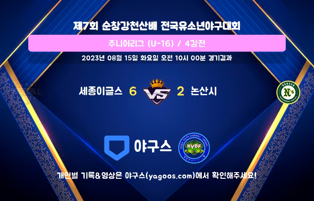 | 팀명 | 1회 | 2회 | 3회 | 4회 | 5회 | 6회 | R | H | E | B | L |
