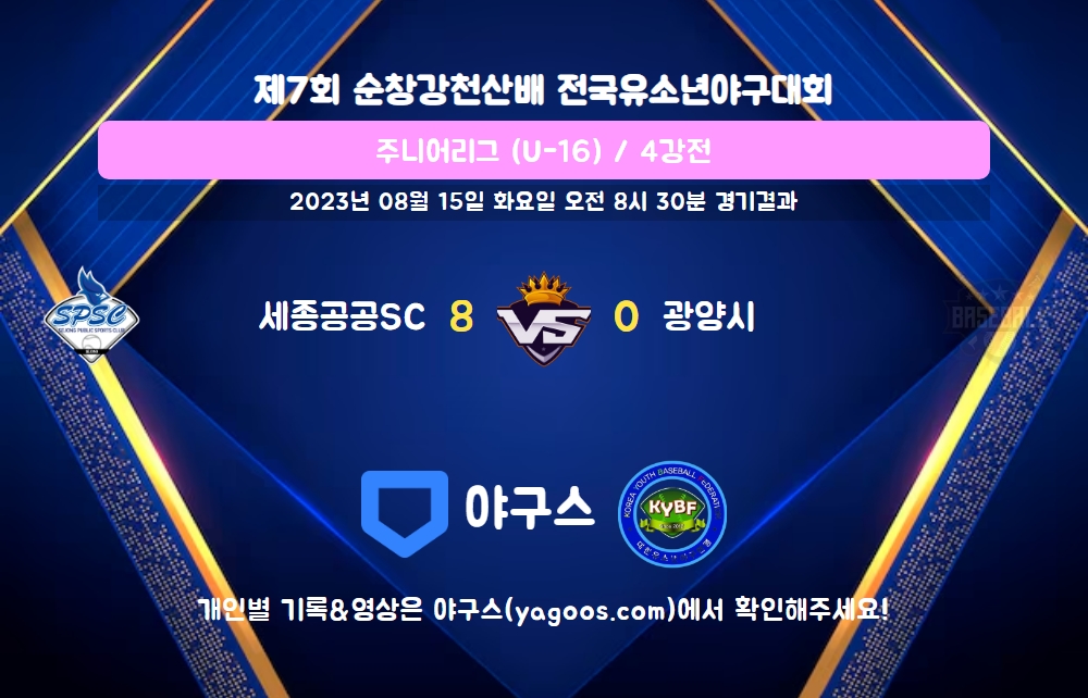 | 팀명 | 1회 | 2회 | 3회 | 4회 | 5회 | 6회 | R | H | E | B | L |