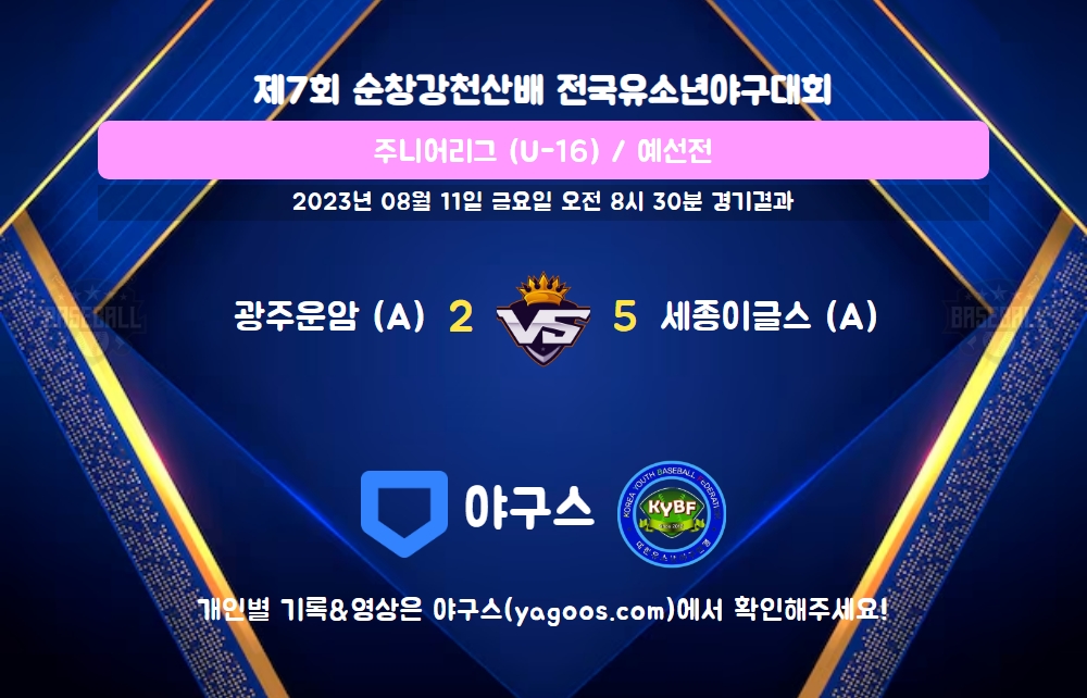 | 팀명 | 1회 | 2회 | 3회 | 4회 | 5회 | 6회 | R | H | E | B | L |