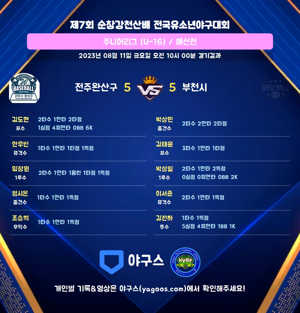| 3 | 포 | 김도현(2) | 우전안 | 투땅 | - | - | 2 | 1 | 2 | 0 | 0 | 0 | - | 0 | 0.500 |