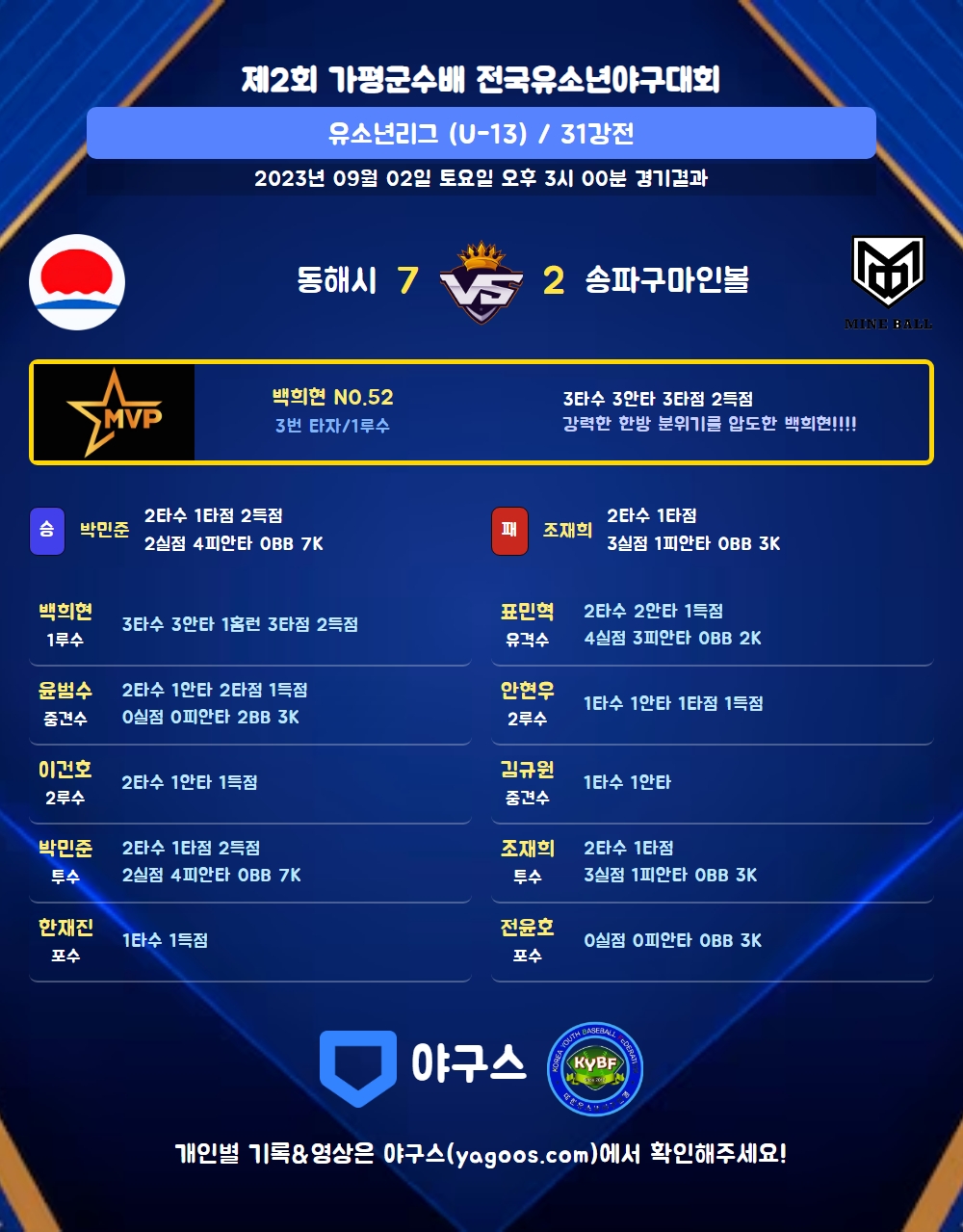 | 홈런 | 백희현(52) |