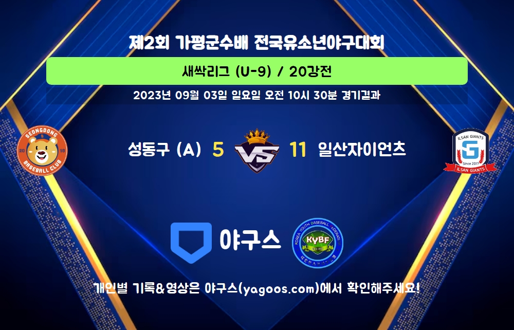 | 팀명 | 1회 | 2회 | 3회 | 4회 | 5회 | R | H | E | B | L |