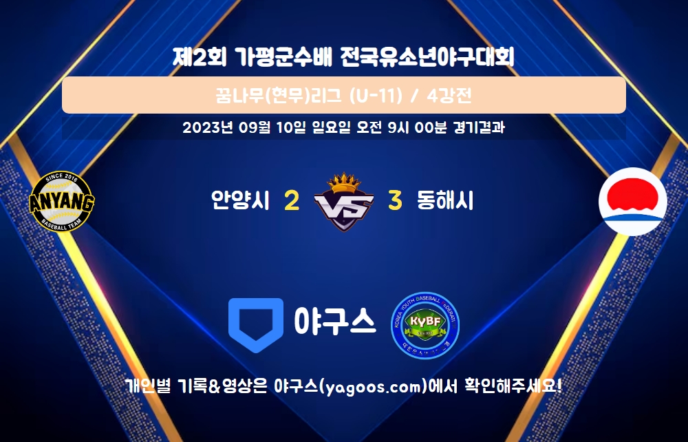 | 팀명 | 1회 | 2회 | 3회 | 4회 | 5회 | R | H | E | B | L |
