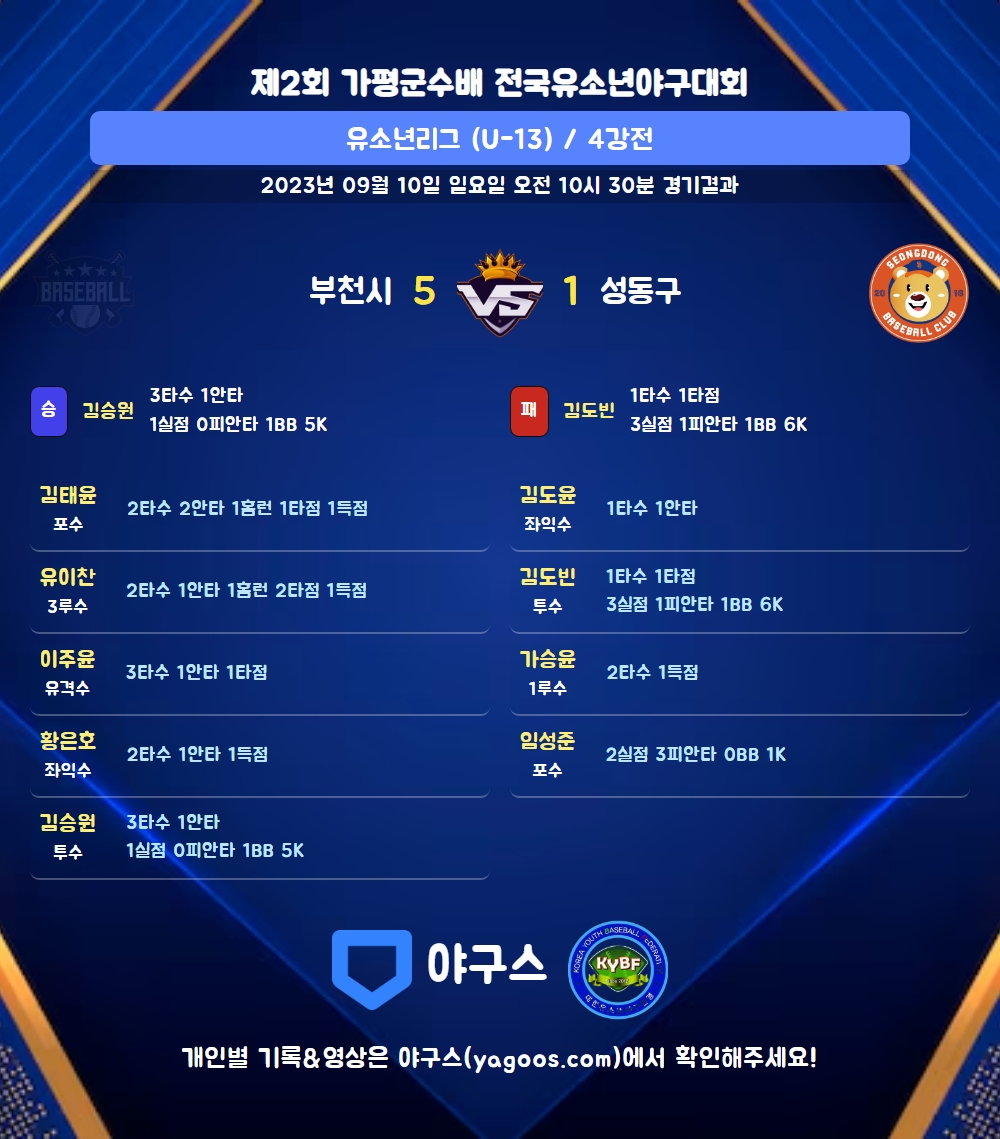 | 홈런 | 유이찬(58) 김태윤(8) |