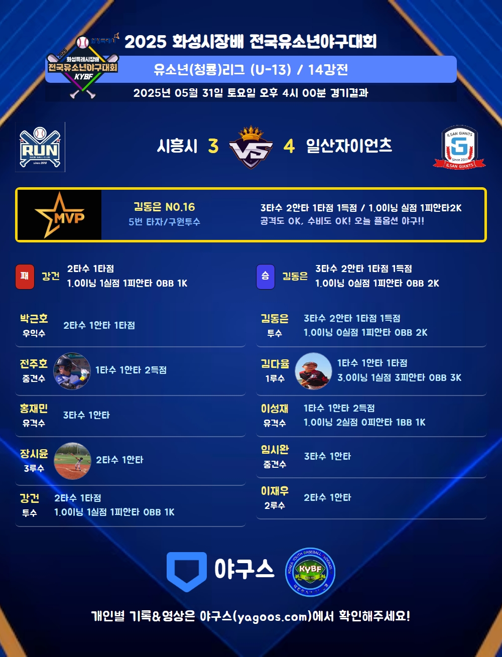 | 2 | 김도윤(13) | - | 0.1 | 3 | 2 | 1 | - | 1 | - | 17 | - | - | 0 |