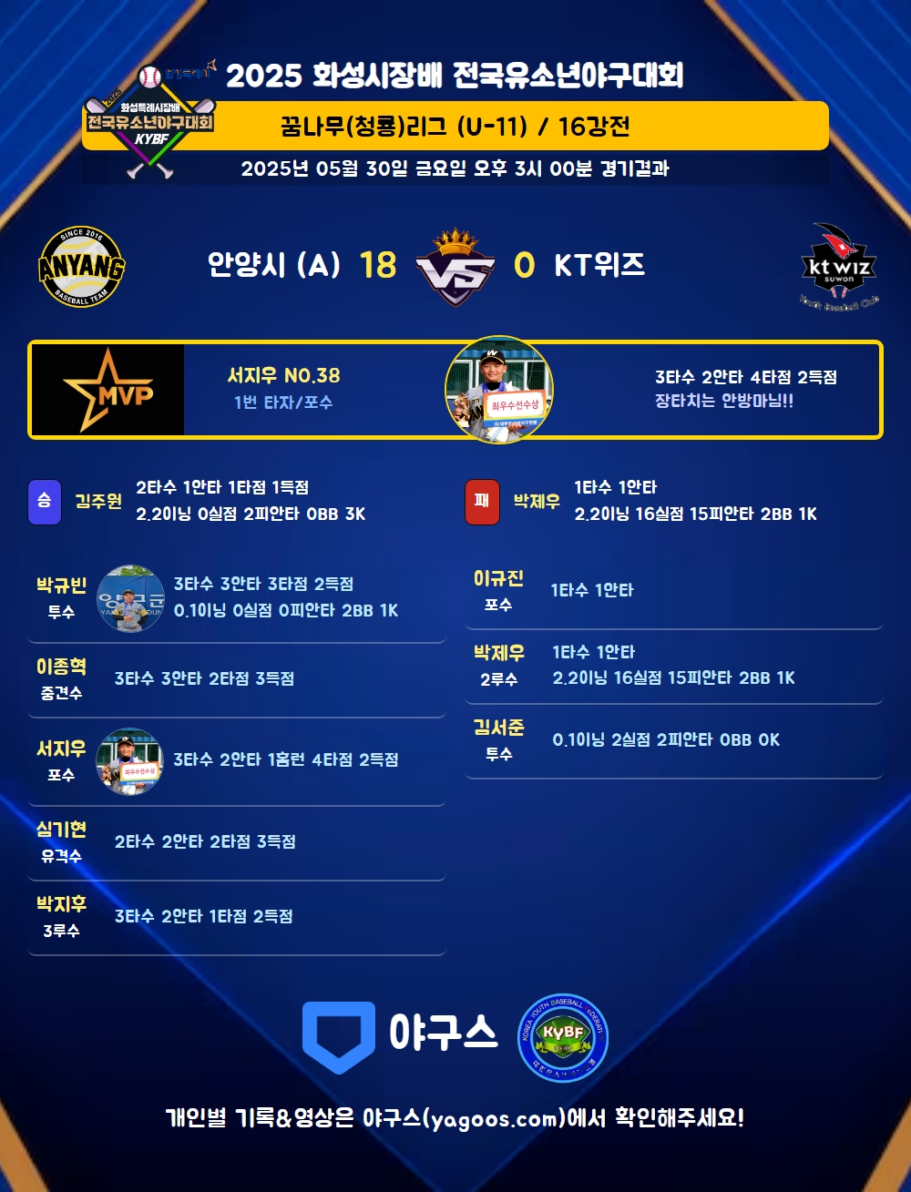 | 1 | 포 | 서지우(38) | 1땅 | 4구/우월2(2타점) | 우선G홈(2타점) | - | - | 3 | 2 | 4 | 2 | 1 | - | 1 | - | 0.667 |