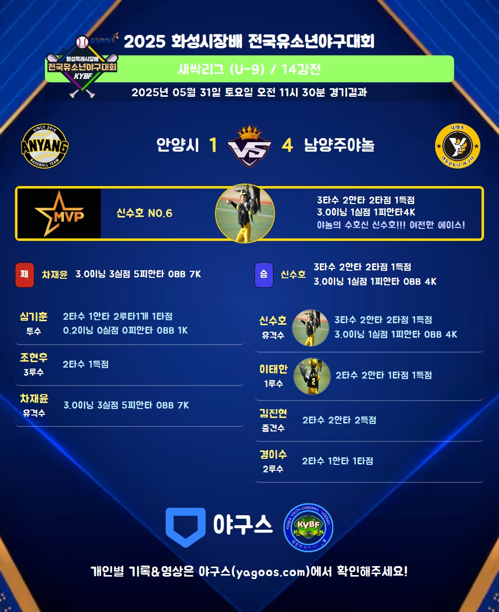| 남양주야놀 | 1 | 2 | 0 | 1 | 0 | 4 | 7 | 0 | 0 | 3 |