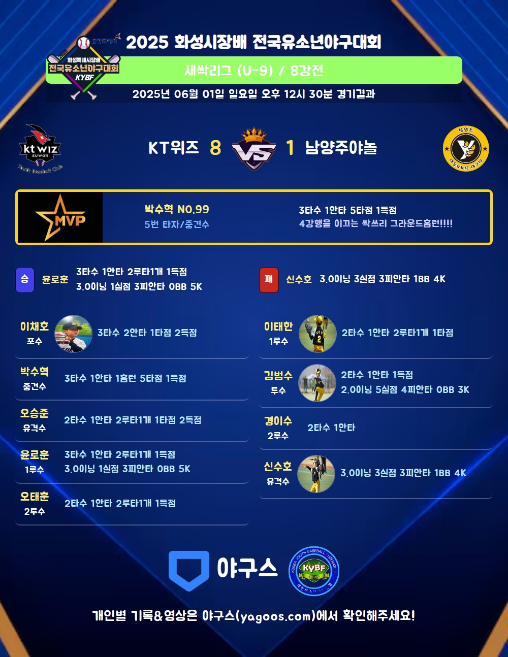 | 1 | 신수호(6) | 패 | 3.0 | 14 | 11 | 3 | - | 3 | 4 | 54 | 3 | 3 | 9.00 |