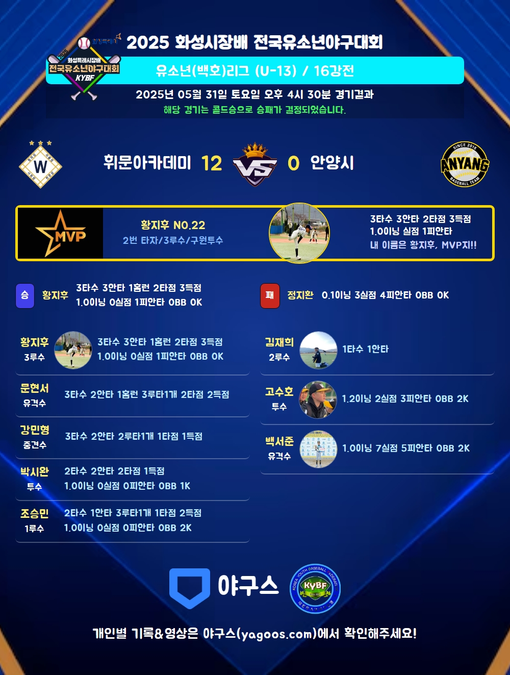 | 홈런 | 황지후(22) 문현서(1) |