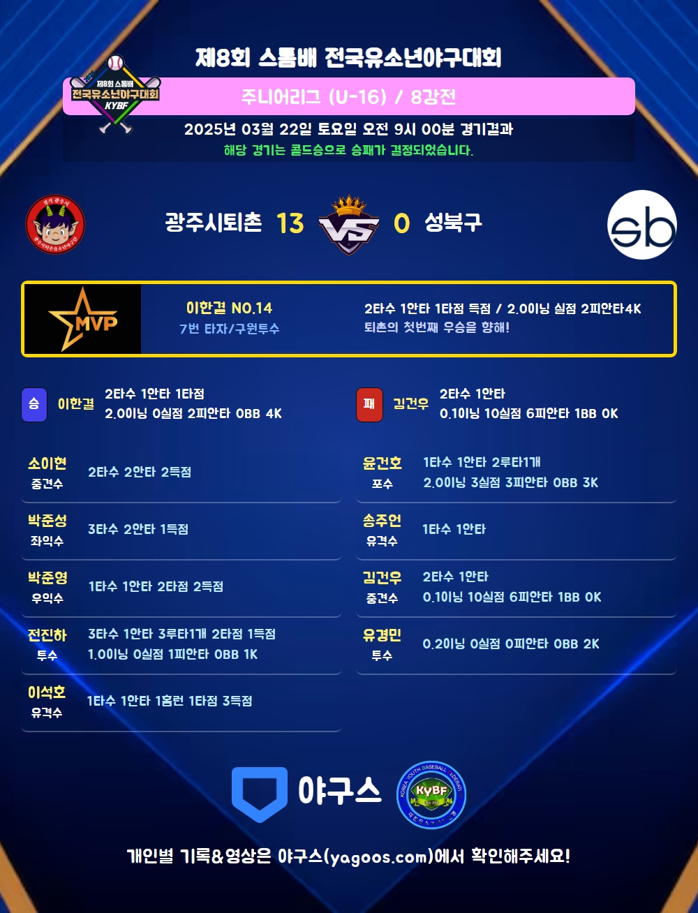 | 광주시퇴촌 | 10 | 0 | 3 | 13 | 10 | 0 | 9 | 5 |