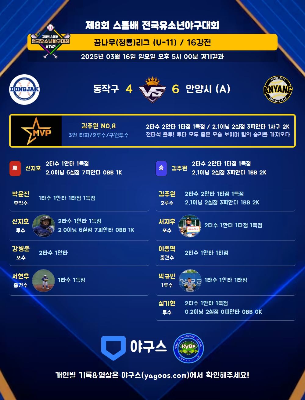 | 6 | 포 | 강병준(11) | - | 중안 | 2 | 1 | - | - | - | - | - | - | 0.500 |