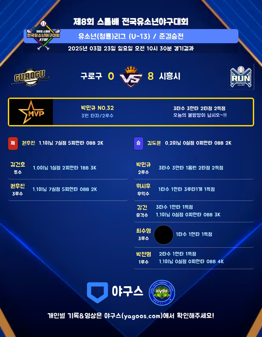 | 2 | 김도윤(13) | 승 | 0.2 | 2 | 2 | - | - | - | 2 | 7 | - | - | 0 |