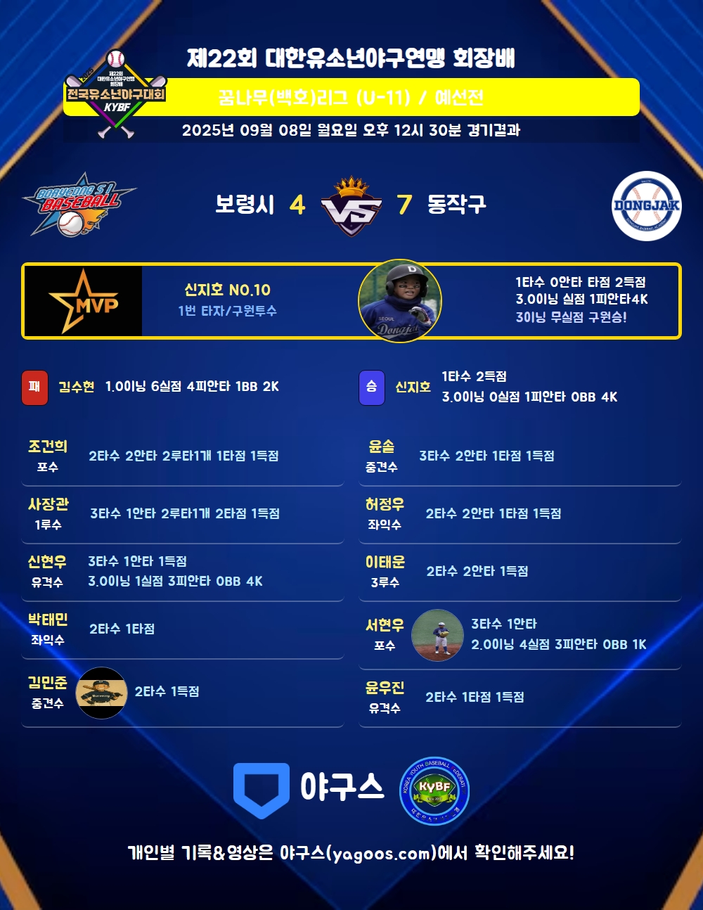 | 3 | 포 | 서현우(13) | 투땅 | - | 2땅 | 유내안 | - | 3 | 1 | - | - | - | - | - | - | 0.333 |