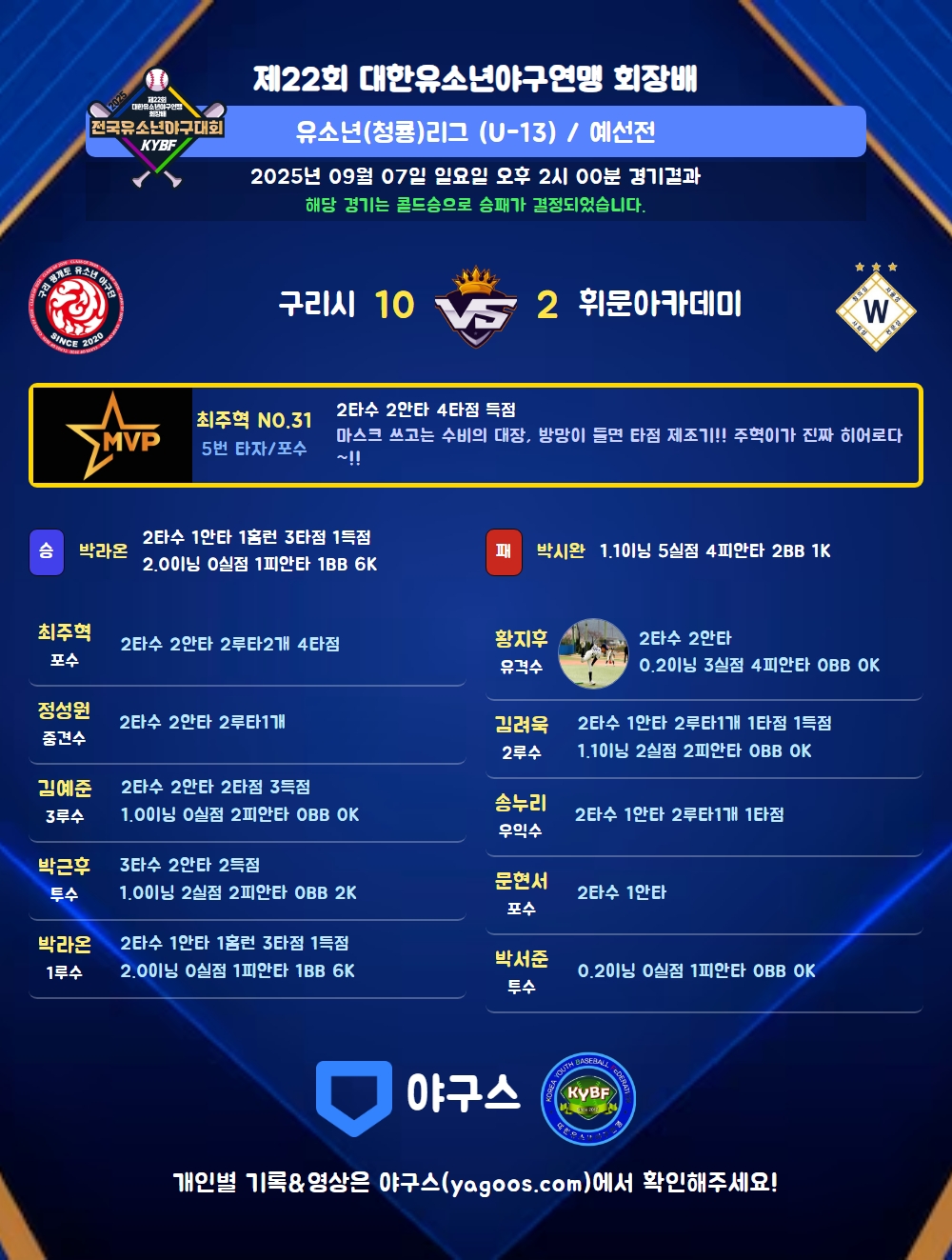 해당 경기는 콜드승으로 승패가 결정되었습니다.