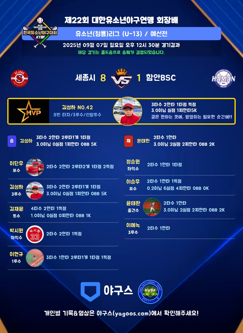 해당 경기는 콜드승으로 승패가 결정되었습니다.