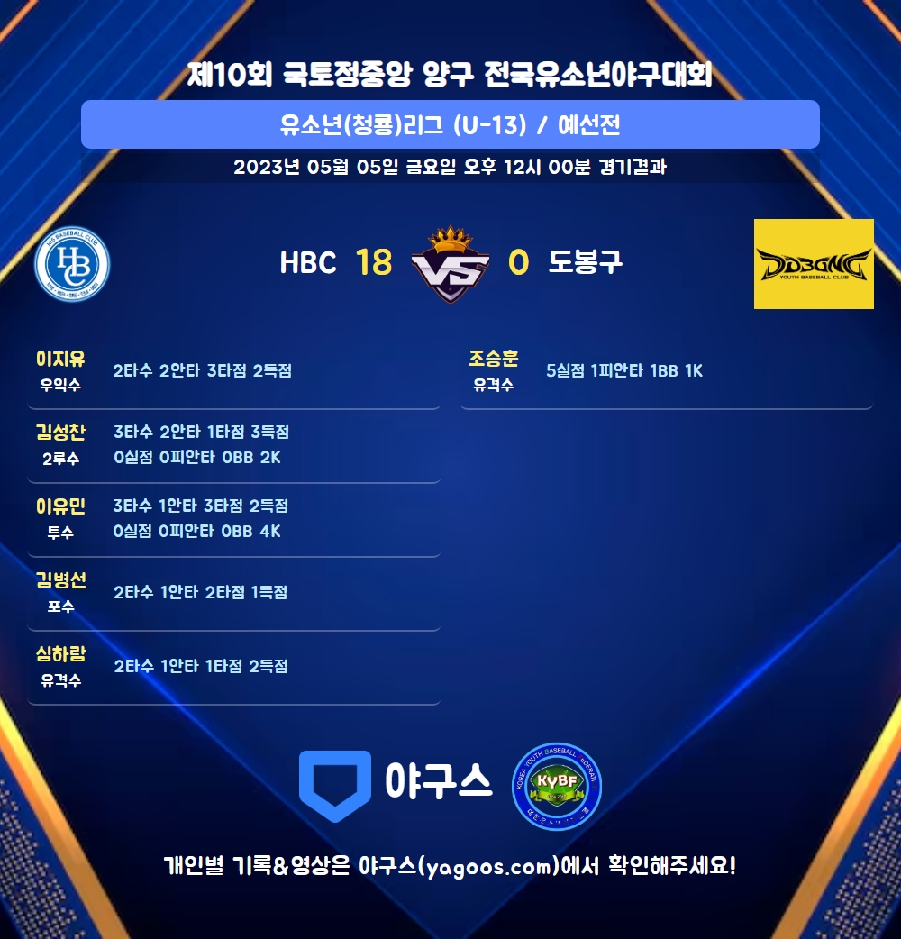 | 9 | 투 | 이유민(13) | - | 삼진 | - | - | 3 | 1 | 3 | 2 | 0 | 0 | - | 0 | 0.333 |