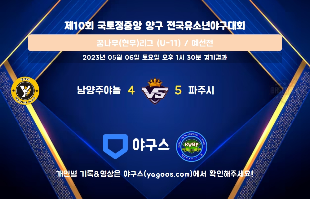 | 팀명 | 1회 | 2회 | 3회 | 4회 | 5회 | R | H | E | B | L |