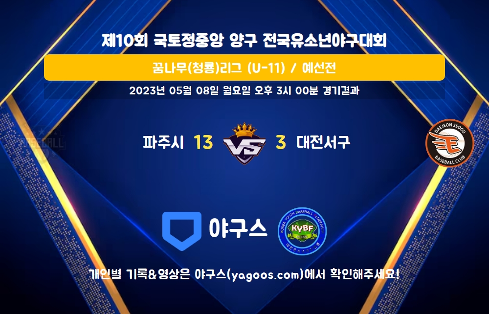 | 팀명 | 1회 | 2회 | 3회 | 4회 | 5회 | R | H | E | B | L |