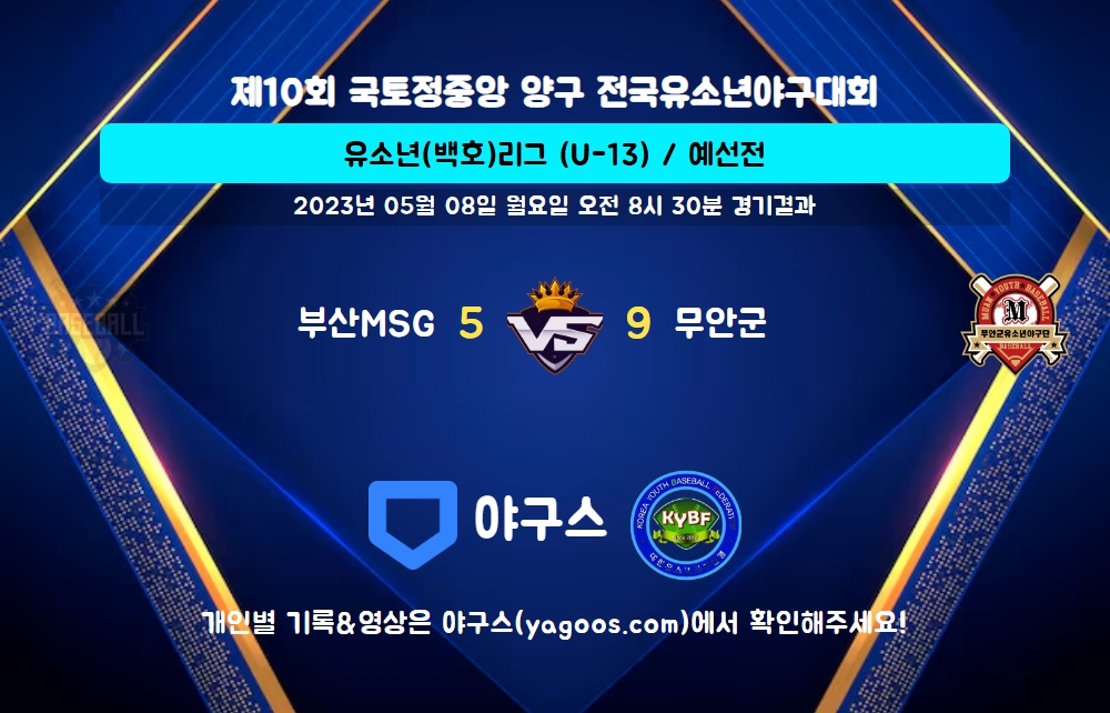 | 팀명 | 1회 | 2회 | 3회 | 4회 | 5회 | R | H | E | B | L |