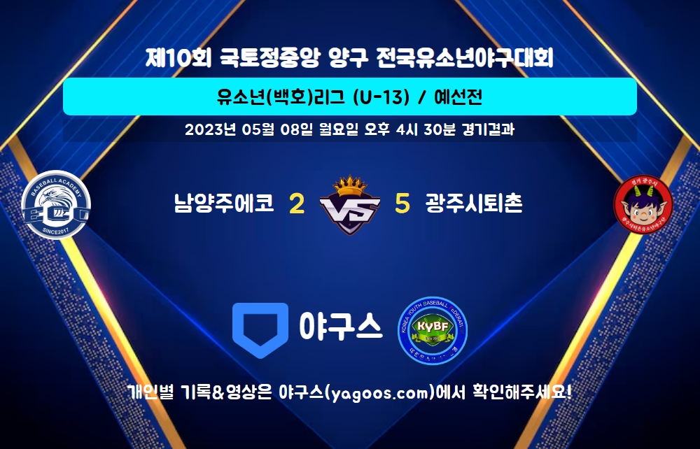 | 팀명 | 1회 | 2회 | 3회 | 4회 | 5회 | R | H | E | B | L |