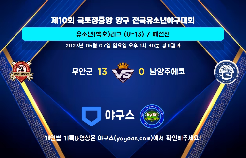 | 팀명 | 1회 | 2회 | 3회 | 4회 | 5회 | R | H | E | B | L |