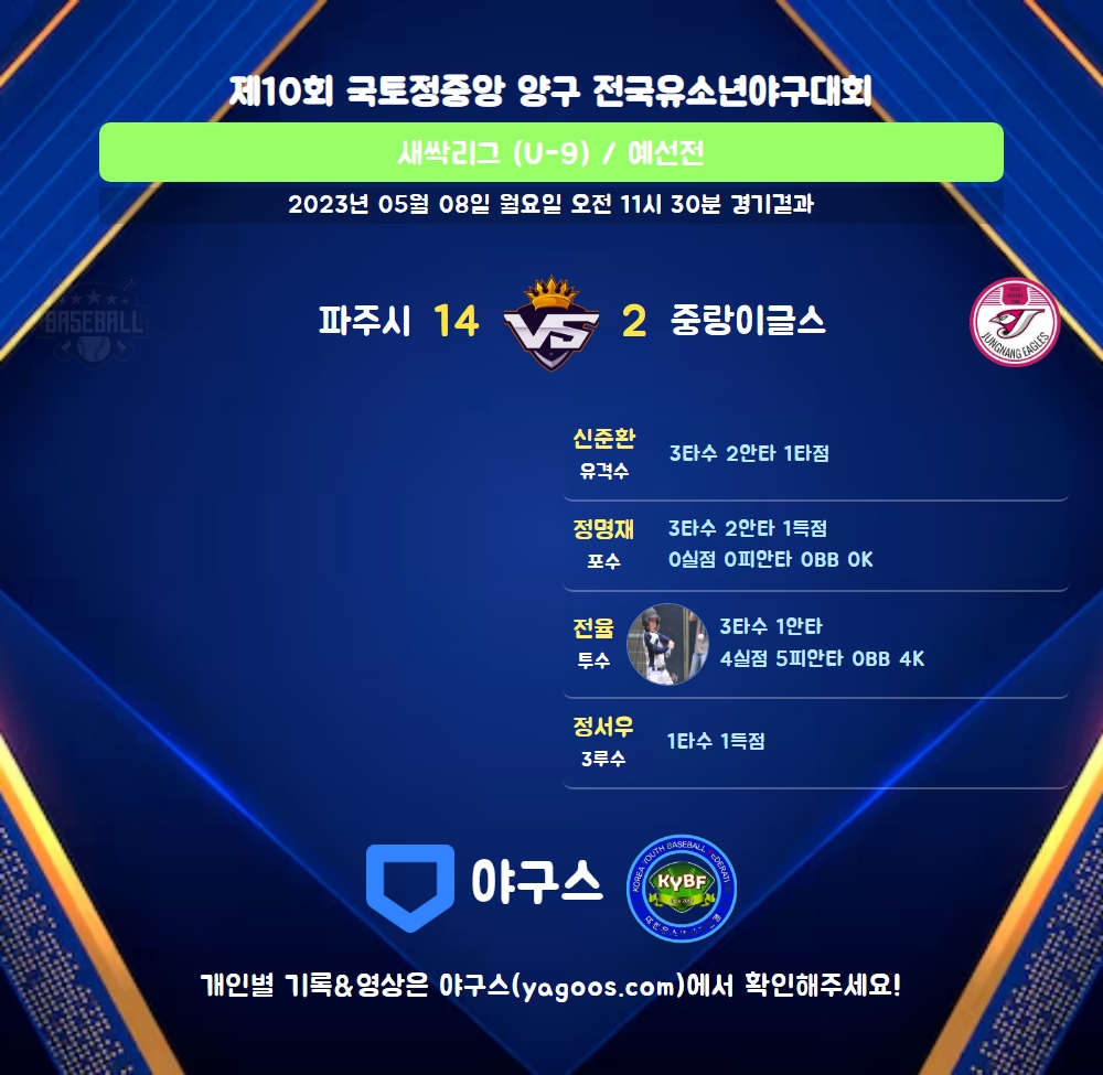 | 중랑이글스 | 0 | 2 | 0 | 0 | 2 | 0 | 0 | 6 |