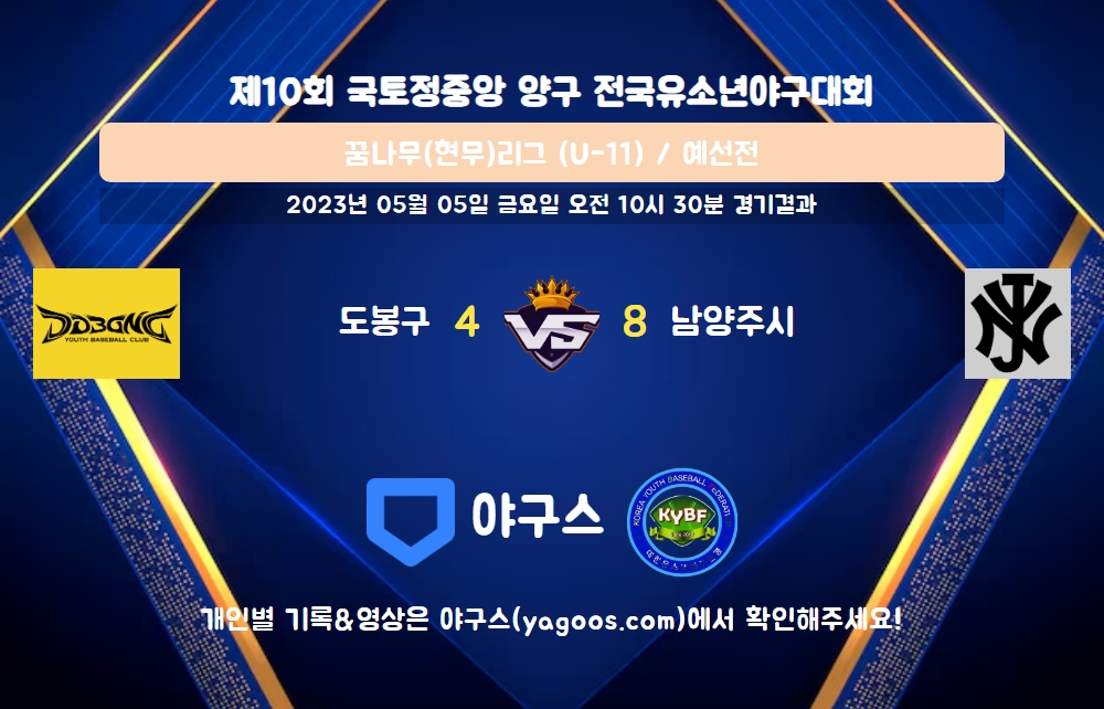 | 팀명 | 1회 | 2회 | 3회 | 4회 | 5회 | R | H | E | B | L |