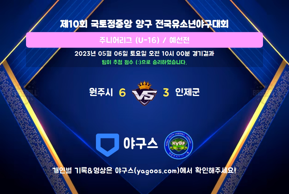 | 팀명 | 1회 | 2회 | 3회 | 4회 | 5회 | 6회 | 7회 | R | H | E | B | L |