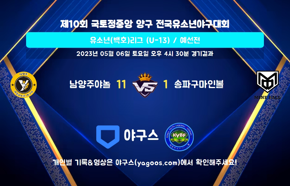 | 남양주야놀 | 2 | 0 | 6 | 3 | 11 | 0 | 1 | 11 | |