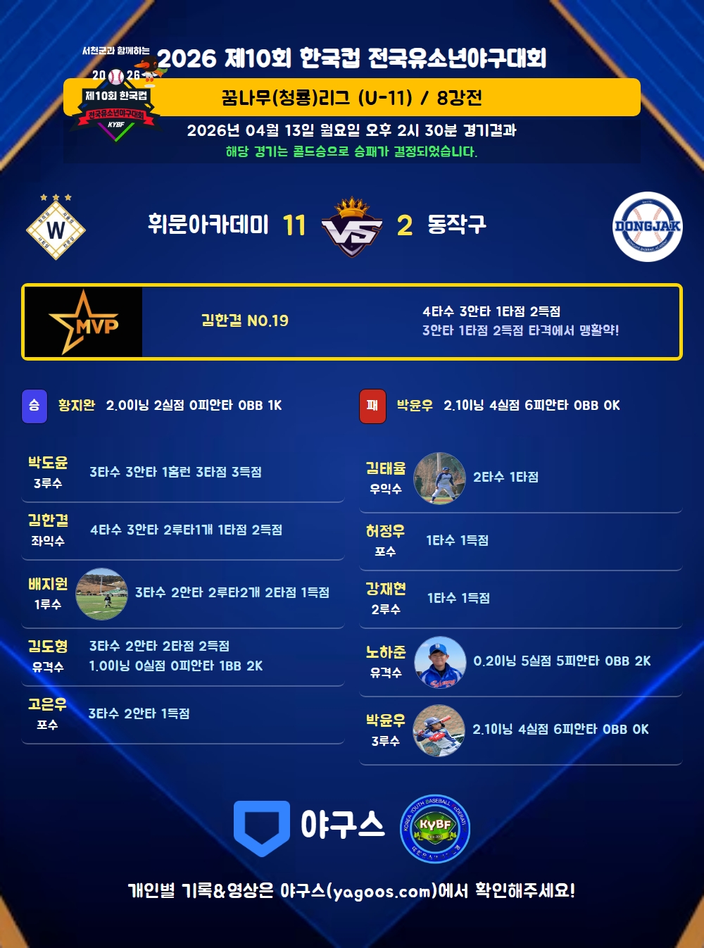 | 휘문아카데미 | 3 | 0 | 2 | 6 | 0 | 11 | 14 | 0 | 1 | 5 |