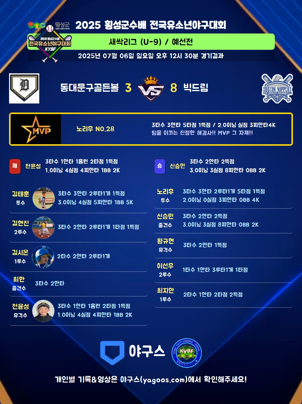 | 2루타 | 김태훈(28) 김현진(14) 김시온(6) 노리우(28) |