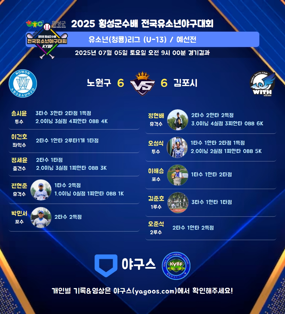 | 6 | 포 | 이해승(188) | - | - | - | - | 우선안(2타점) | - | 1 | 1 | 2 | - | - | - | - | - | 1.000 |