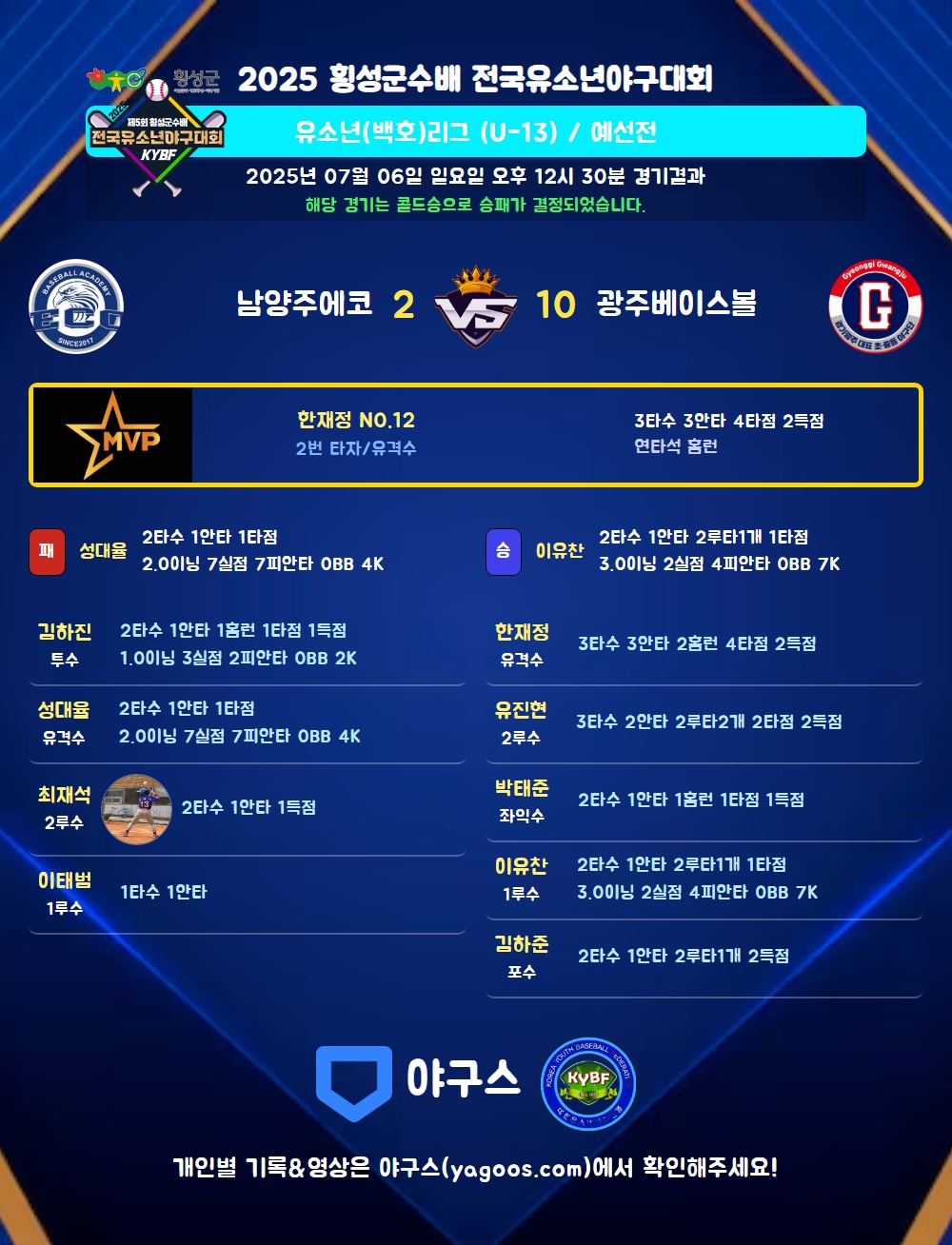 해당 경기는 콜드승으로 승패가 결정되었습니다.