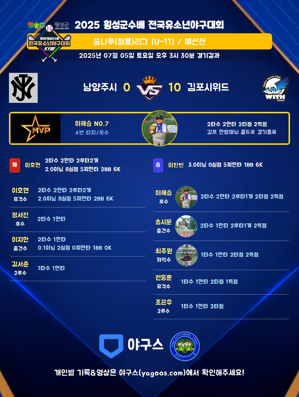 | 2루타 | 이호연(9) 송시운(10) 이해승(7) |
