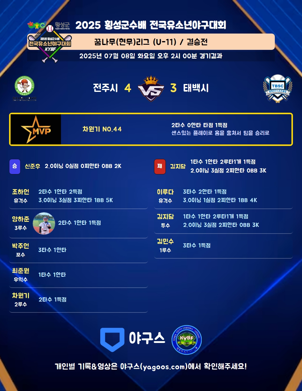 | 8 | 二 | 김준서(140) | - | 삼진 | - | 삼진 | - | 2 | - | - | - | - | - | - | 2 | 0.000 |