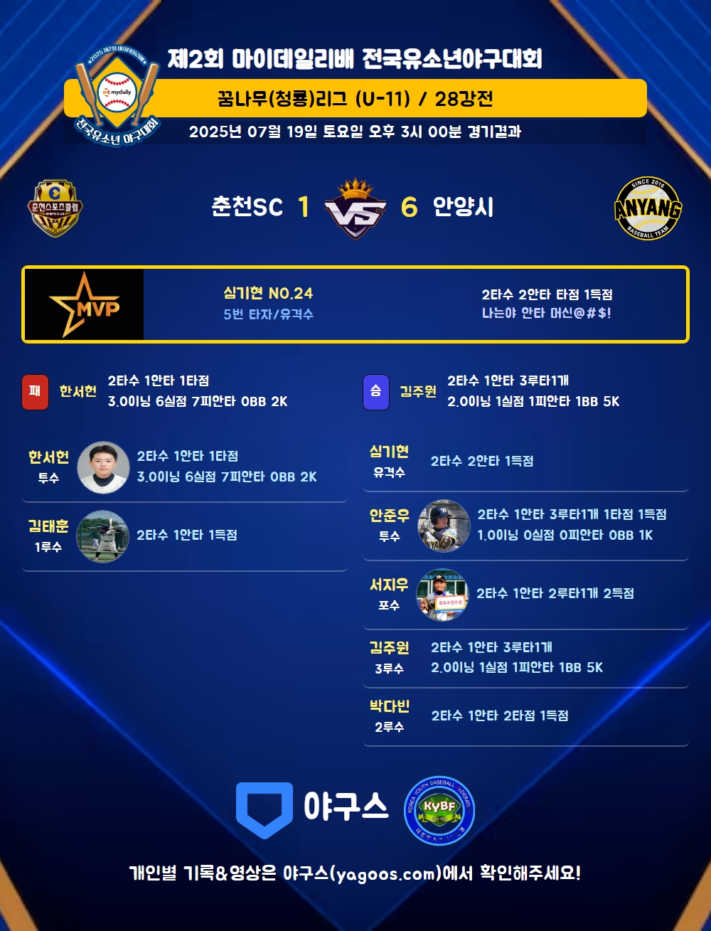 | 3 | 투 | 안준우(63) | 중월3(1타점) | 2땅 | - | - | - | 2 | 1 | 1 | 1 | - | - | - | - | 0.500 |