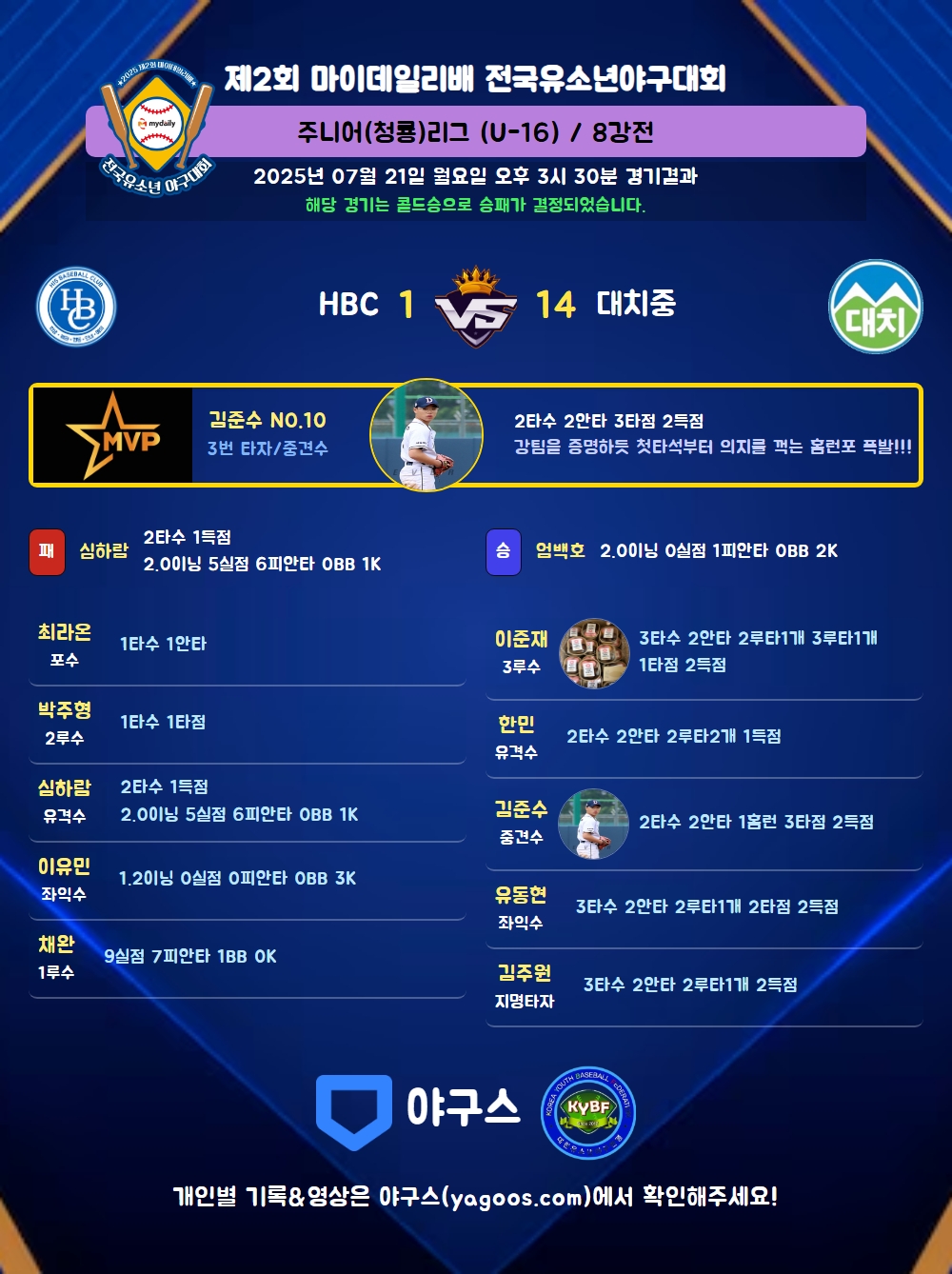 해당 경기는 콜드승으로 승패가 결정되었습니다.