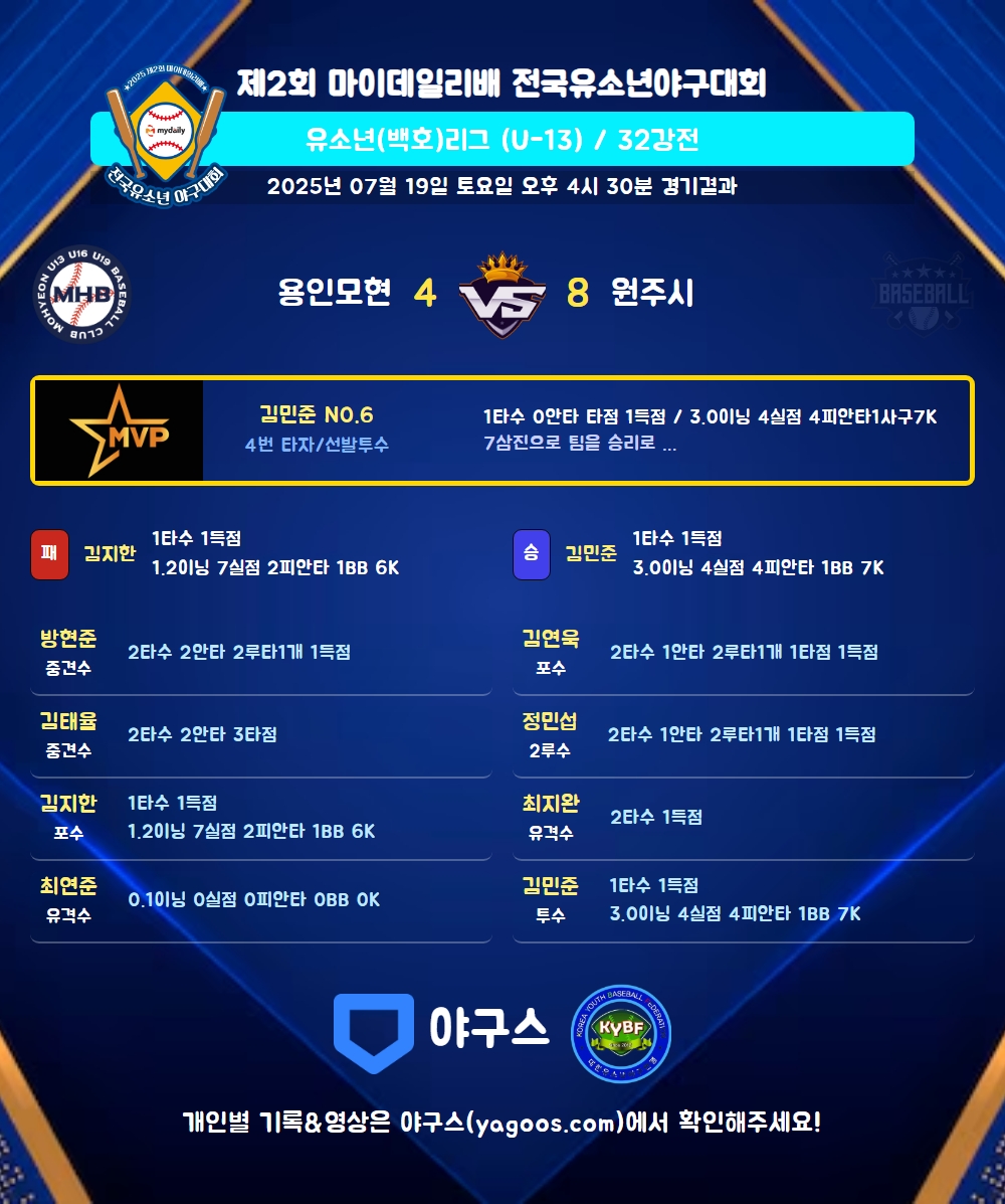 | 4 | 투 | 김민준(6) | - | 사구/중플 | - | - | - | 1 | 0 | - | 1 | - | 2 | 1 | - | 0.000 |