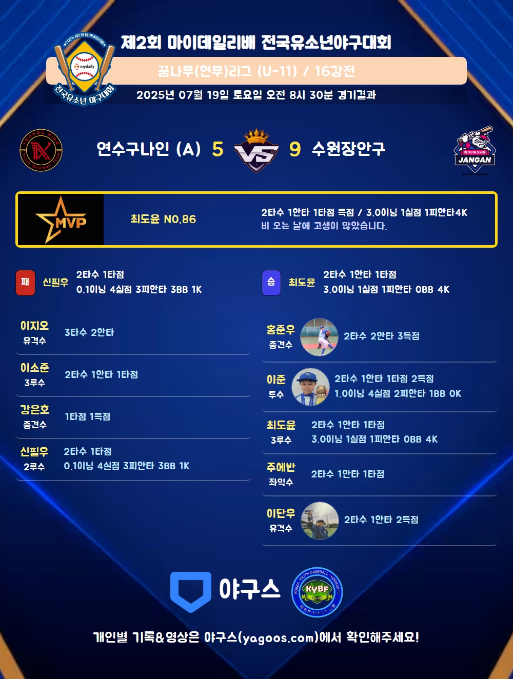 | 8 | 一 | 윤예준(470) | - | - | 4구 | 유땅 | - | 1 | 0 | - | - | - | 1 | 1 | - | 0.000 |