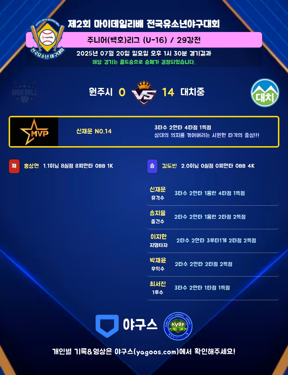 해당 경기는 콜드승으로 승패가 결정되었습니다.