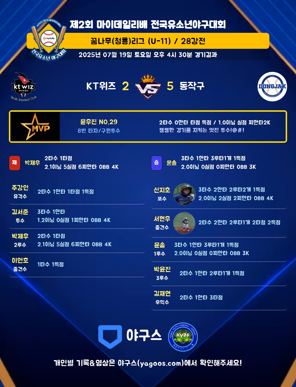 | 2루타 | 신지호(10) 서현우(13) 박윤진(31) |