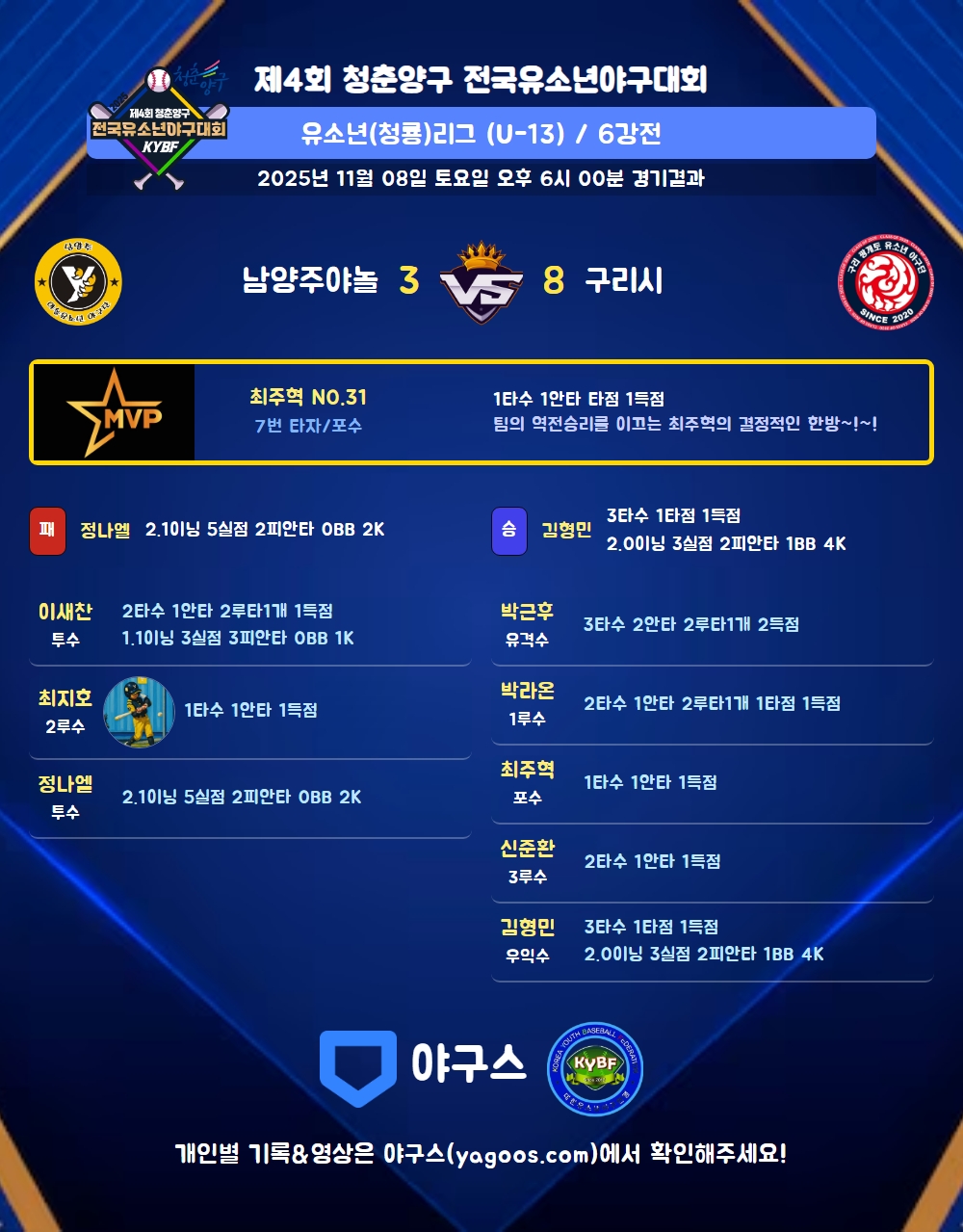 | 남양주야놀 | 1 | 0 | 2 | 0 | 3 | 2 | 6 | 5 | 2 |