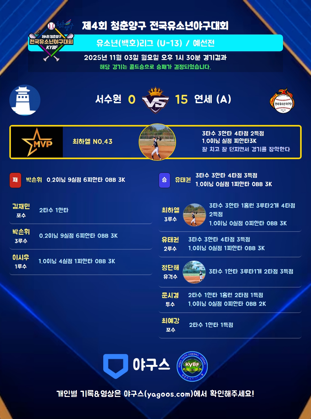 해당 경기는 콜드승으로 승패가 결정되었습니다.