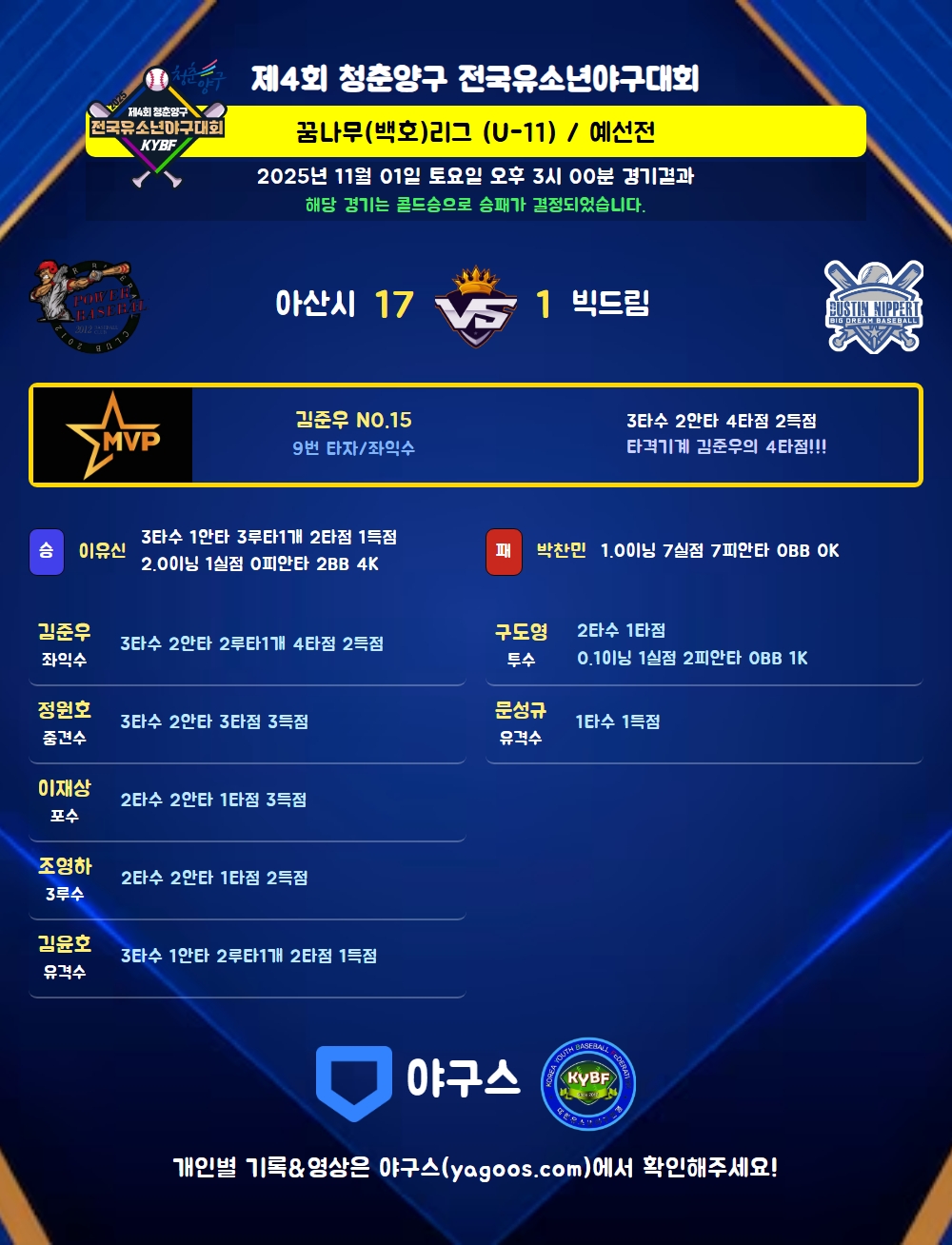 2025시즌-꿈나무(백호)리그 (U-11)