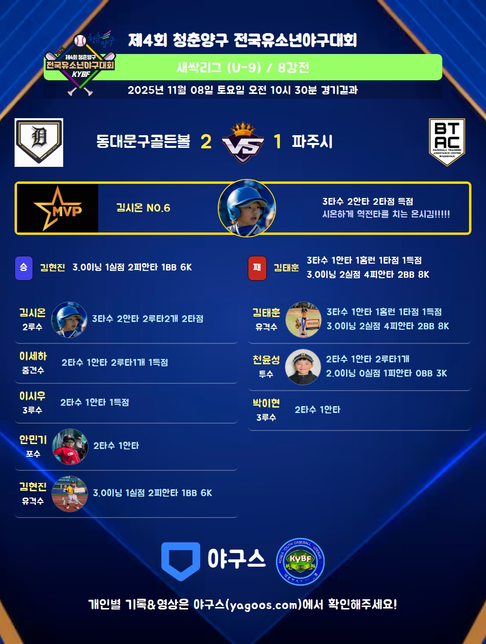| 2루타 | 김시온(6) 이세하(34) 천윤성(10) |