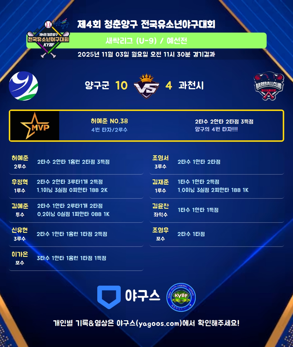 | 3 | 김예준(10) | - | 0.2 | 3 | 2 | 1 | - | 1 | 1 | 16 | - | - | 0 |