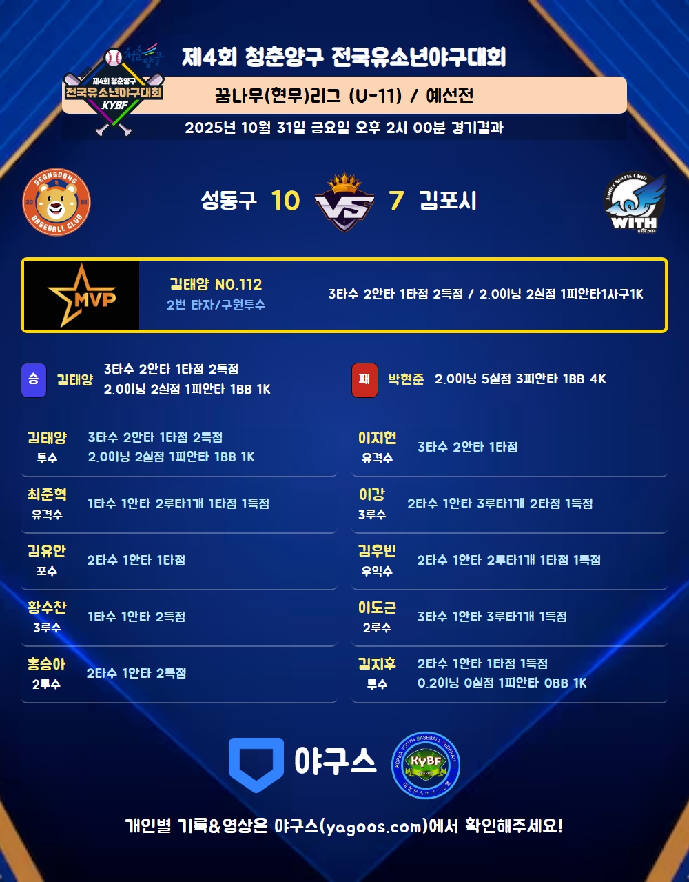 | 김포시위드 | 0 | 5 | 1 | 1 | 0 | 7 | 7 | 3 | 7 | 6 |