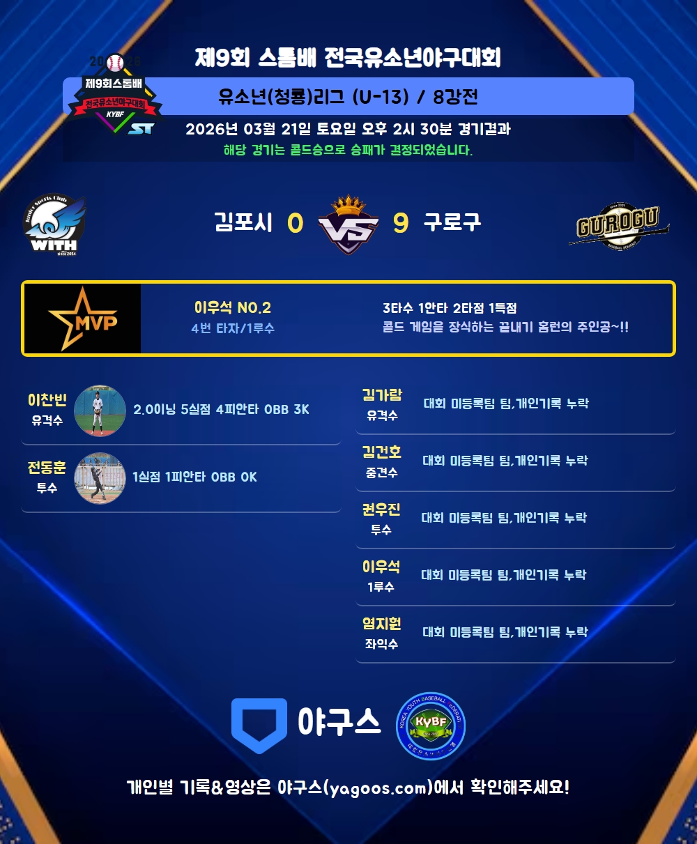 | 9 | 포 | 송준호(10) | 대회 미등록팀 팀 / 개인기록 누락 | |||||||||||||||||||