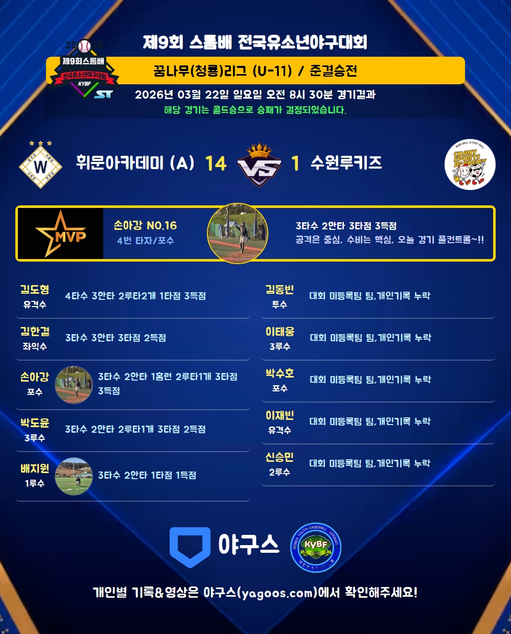 | 3 | 포 | 박수호(11) | 대회 미등록팀 팀 / 개인기록 누락 | |||||||||||||||||||