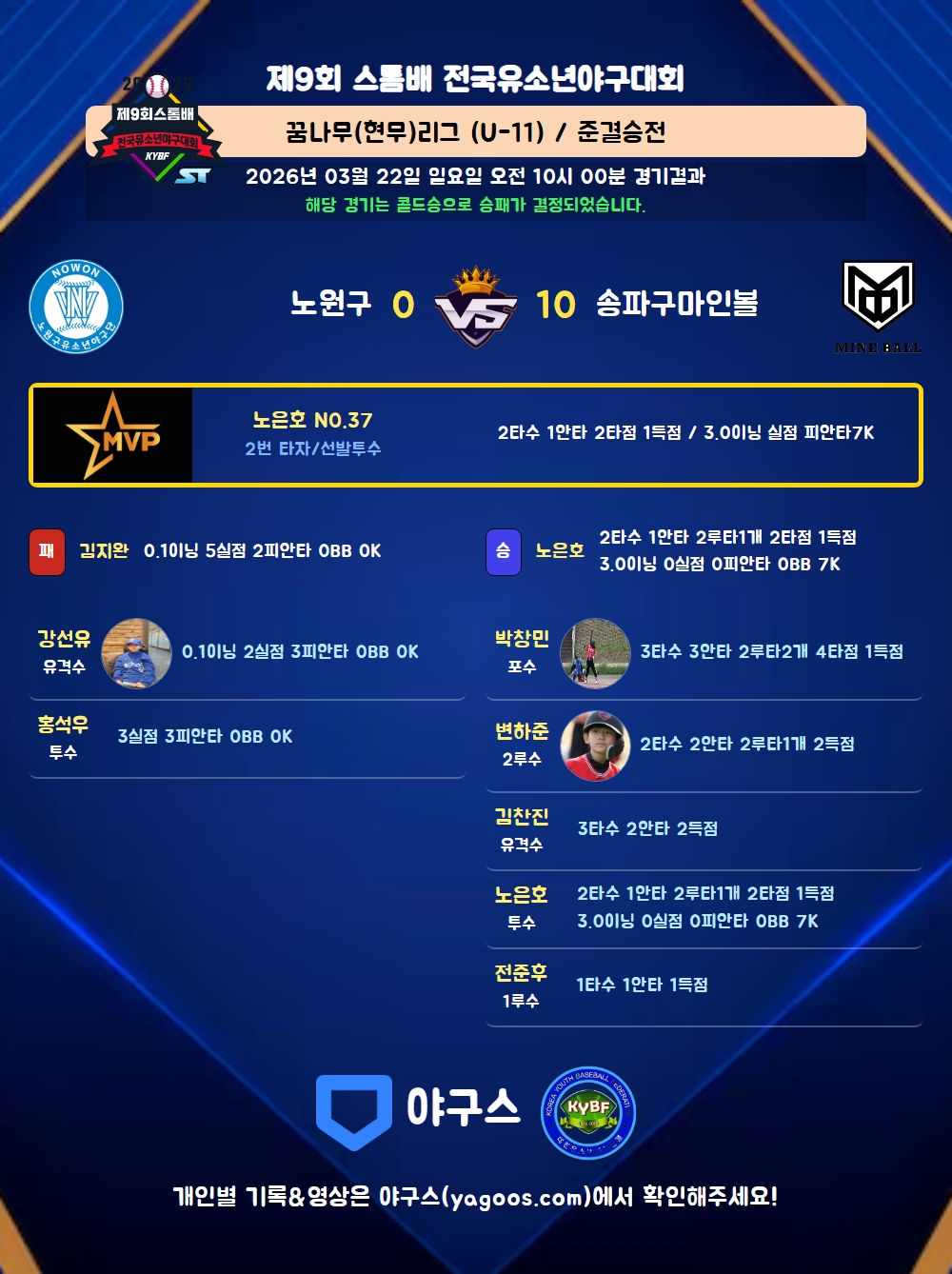 해당 경기는 콜드승으로 승패가 결정되었습니다.